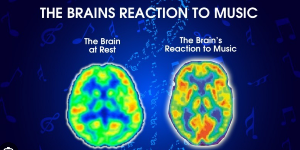 In this deep review of all sorts of music, the section that focused specifically on playing music revealed some more interesting facts. It mainly focused on the review of two types of studies in relation to playing music, the relation of brain activity from performer to listener, and from performer to performer. From the performer to the listener, specifically, the performance of drum beats showed activity in the right temporoparietal junction(TPJ), which is the junction of the temporal and parietal lobes. This area combines sensory information with internal body signals, which allows for the creation of empathy, self-awarness and attention. With another type of performer-to-listener pair, the performers were violinists, and in both the performer and the listener, the left TPJ, right inferior frontal cortex, and the central posterior cortex were activated. This means that as the performer was trying to convey emotions, the listener’s brain did pick up on it. The right inferior frontal cortex, which is an area specifically known for motor inhibition and empathy, was activated in the performer, most likely because of the motor skill of playing, and within the listener because their brain was mirroring the movements of the player. This is the reason why when we listen to music, we get the urge to tap our feet or move along with the music. Finally, the central posterior cortex was also activated, an area specifically known for sensory information and spatial awareness. For the performer, this part of the brain was likely activated for the spatial navigation of the instrument, like knowing where to place your fingers “automatically” while playing. The listener had this area activated to track the rhythm and pitch of the music to paint a mental picture. On the performer-to-performer side, many of the same areas of the brain were activated, but mainly for the reasons of physically playing the instrument. The main focus of attention is still the TPJ, which was the most activated area in all participants of the studies. Still, while looking at neuroimaging of someone playing an instrument, it lights up almost every part of your brain! (See image below)